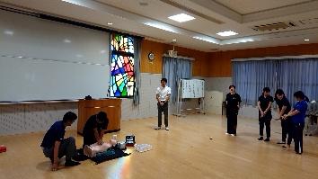 7月18日(木)、学習センター2Fにおいて、職員を対象として心肺蘇生法とエピペン使用の研修が行われました。
