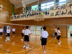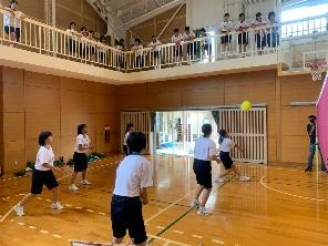 開始直前に天候が悪くなった関係で男女ともにミニバレーボールを行いました。