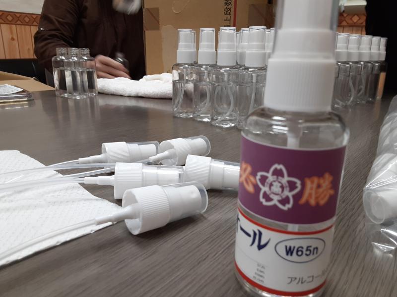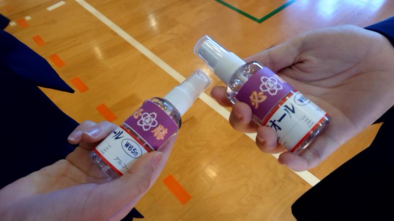 週末の共通テストに向け、育友会に「携帯用消毒スプレー(60ml入)」をご準備頂いています。