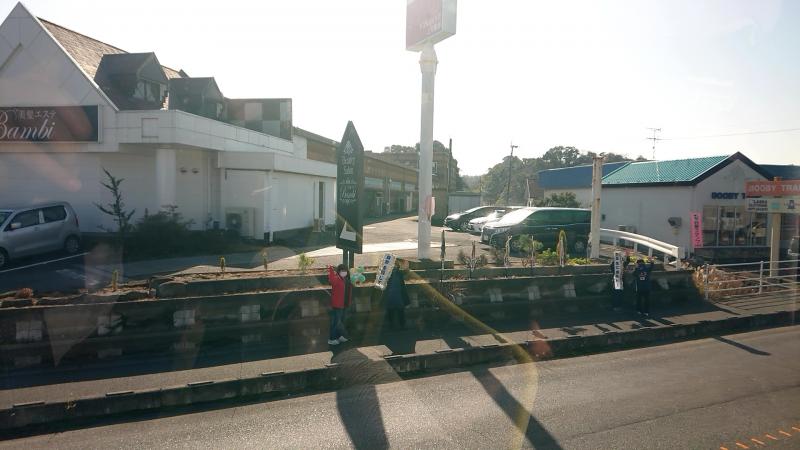 1月15日(金)、大学入学共通テストの会場の下見に行く途中、上天草市のショッピングセンター付近の沿道で保護者の方々から応援して頂きました。