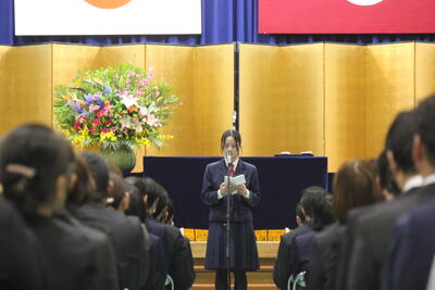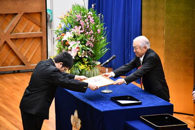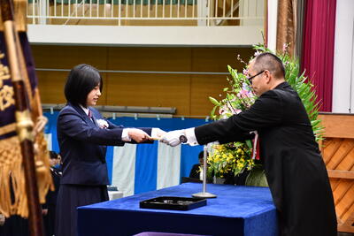 卒業生を代表して、尾上さんが卒業証書を受領しました。また、同窓会会長より松上さんが雛鵬賞をいただきました。