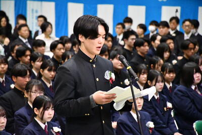 思いのこもった温かい送辞。高校3年間に思いを馳せ、将来への抱負を誓った力強い答辞。目に涙を浮かべた卒業生が多くいました。