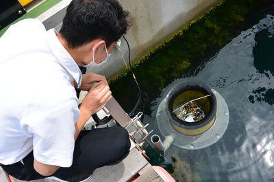 吉田教授の研究室では、漁港に海洋ごみ自動回収機「シービン」を設置されており、このシービンが回収したゴミについて調査を行いました。