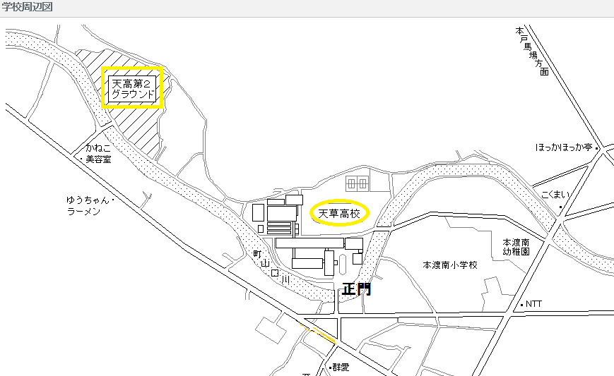【第2グラウンドへの地図】   アクセスはこちら→http://sh.higo.ed.jp/amakusa/access/