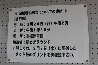 14日(水)は高校入試合格発表です。全日制は、9時・本校玄関前に掲示します。