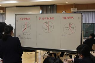 発表会では、ベストプランをプレゼンし、他班と比較しながら、今後のエネルギー事情を想像していました。これからの日本のエネルギーミックスがどうなっていくのか、将来にわたり考えていく課題になりました。