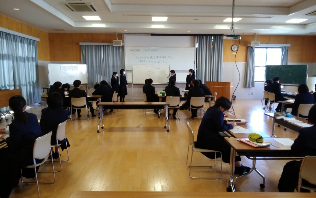 1年物理基礎の授業です。ディベートと発表会に挑戦です。