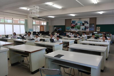 本日のATの時間から、ついに2学年と3学年の生徒が同じ教室内で研究活動を行っています。これは、今年度からの取り組み(※昨年度、部分的に試行運用)なのですが、2・3年生が同じ教室内で研究活動を行うことにより、お互いの研究について学びあったり、アドバイスをしたり、質疑応答をしたりする機会を増やそうとするものです。本日は、環境が変わって最初の1時間目ということもあり、若干緊張したような雰囲気もありましたが、これからの活動で少しずつ交流をしていってくれることと思います!
