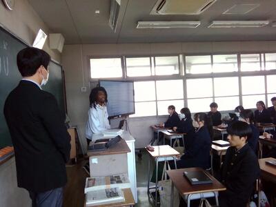 熊本第二高校のスーパーティーチャーである友田先生を始め、多くの先生方の参観のもと授業が始まり、大嶽先生も生徒たちも少し緊張していました。