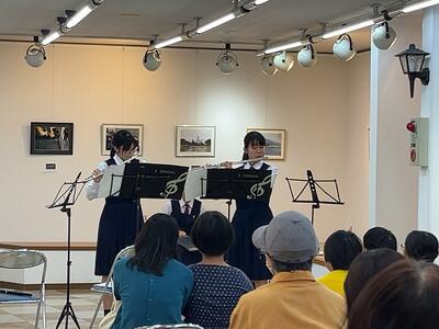 10月21日(土)、22日(日)に銀天街のギャラリー四季で開催された第20回世界の街歩き写真展で、吹奏楽部の一部の生徒がミニコンサートを行いました。