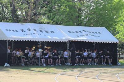 4月には、銀天街で開催された天草桜まつり、体育大会で演奏しました。