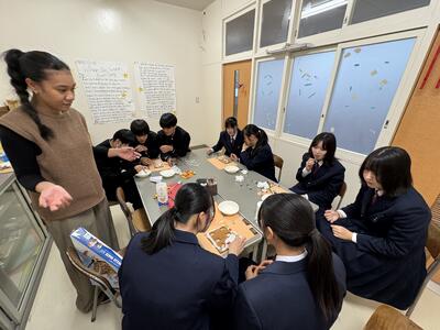 Students worked in groups, with each team decorating a different side. Afterward, we put all the pieces together to build one complete house. The frosting wasn’t very sticky, so we ended up using a bit of tape to hold it together—but it still turned out nicely. We also listened to Christmas music while we worked, which made the activity even more enjoyable.