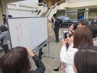 クラス分け掲示板を記念に。                新入生入場(1・2組)