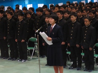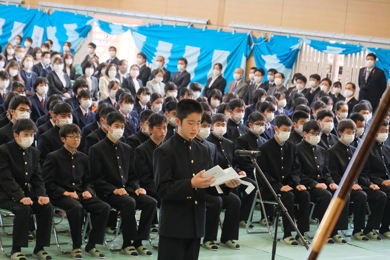その後、山田さんが「今、私たちは、自分たちの夢や目標を忘れず、一生懸命に努力し続けることを決意している。」と力強く新入生代表宣誓を行い、入学生全員の気持ちを伝えてくれました。