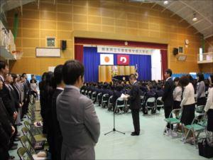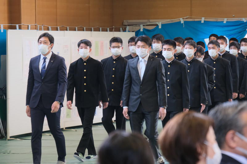 全員の入学が許可され、馬場校長が「挑戦者であれ」「誠実であれ」と述べられました。