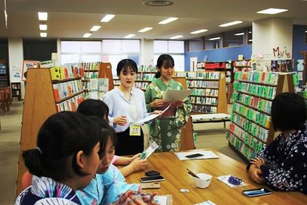 浴衣着付け、茶道、琴の体験に加え、図書館ではあやとりと折り紙体験を準備しました。