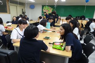 馬場校長の韓国語での挨拶から始まり、互いの自己紹介と、韓国の文化の紹介等がありました。