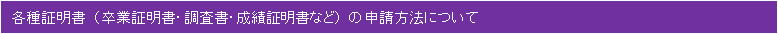 卒業生の証明書発行にあたっては、個人情報保護の観点から、ご本人の意志によるお申し込みであることを確認させていただくため、身分証明書等の提示をお願いしております。