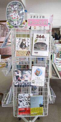 ネコの生態に関する本の他、ネコのかわいい写真と一緒に学べる言葉の本や名言の本、ネコが出てくる小説なども展示しています。