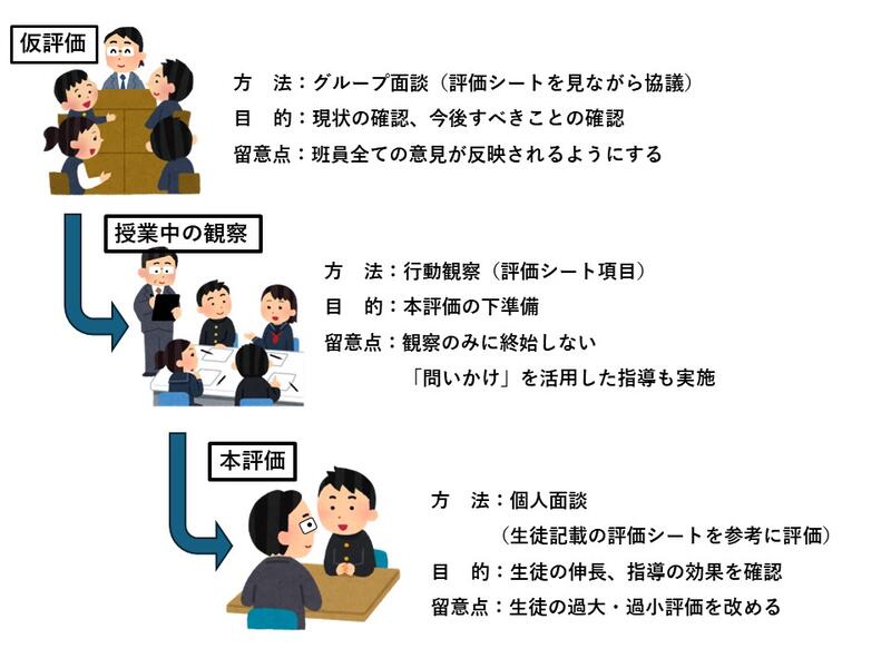 仮評価と本評価を連動させることで、「指導と評価の一体化」を図ります。