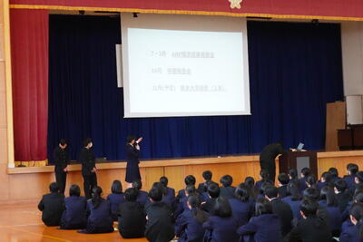 限られた時間でのスライド作成に苦戦した生徒もいるものの、見やすく、分かりやすい発表スライドにするにはどのようにしたら良いかを考えながら、それぞれ工夫した跡がしっかり資料に表れていました。発表では、スライドの文章をそのまま読んでいる場面もまだ多く見られる中、クロームブックを持ち上げて見えやすくしたり、ジェスチャーをうまく活用したり、発表の中で意識的に顔を上げ、グループのメンバーの表情を見ながら発表している人もいました。クラスによっては、担任の先生の推薦やクラスのみんなの投票によって選ばれた代表者がクラスメイトの前で発表を行いました。(家で練習したのかな?と思うぐらい、堂々とした発表&工夫がつまったスライドでした。さすが!)