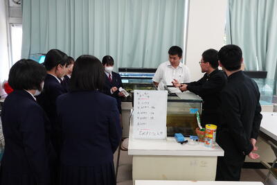 本日は、1年生全員を対象としてSSH熊本大学研修を行いました。7時30分に学校を出発し、バス6台で熊本大学の8つの学部と合津マリンステーションを訪れ、それぞれで研修や実習を体験しました。