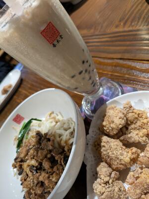 さて、台湾最後の晩餐は、去年の研修時にもお邪魔した、タピオカミルクティー発祥の店としても知られる「春水堂」にていただきます。今年のメニューは、細めのうどんの上に肉味噌がのった、台湾のソウルフードとも言われる「牛肉麺」と、日本のものと少し違う、スパイスが香る唐揚げ。もちろん、台湾最後?の、タピオカミルクティーもいただきます。