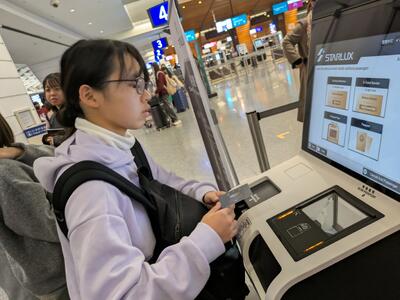3泊4日の台湾研修も、あっという間に帰国日を迎えました。今朝は5時にホテルを出て、空港に向かいます。早起きして目をこすりながら、みんなロビーに降りてきました。朝早いため、ホテルから朝ごはんを"bento box"に入れてくれる...ことは伺っていたのですが、思ったより大きくてびっくり。中身は、パン、サンドイッチ、みかん、そしてなぜか、「アスパラガスジュース」。果汁10%ですが、後口はしっかりアスパラガスの味がしたようです。美味しかったかどうかについてはノーコメントですが、みんな、ちゃんと全部飲んでいました。アスパラギン酸で、ちょっと元気になったかな。