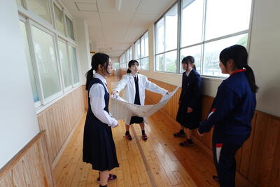 本日はリレー出場選手が打合せ及びバトンとなる白衣の装飾を行っていました。