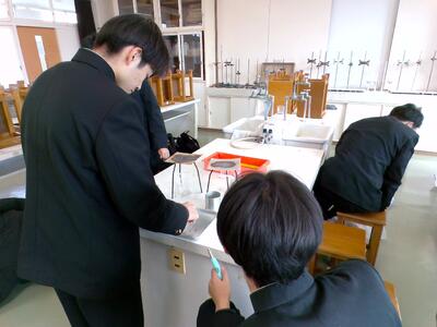 本日6・7時間目の天草高校地学室は、学年末テスト前日とは思えないくらい(?)、みんな研究に没頭しています。ペットボトルキャップを加工する、マイクロプラスチック班に、オリーブの葉で足湯ならぬ手湯?を試してみている薬草班、それに、発電に向けた準備を黙々と行う、電磁誘導班。それぞれ思い思いに、研究を進めています。