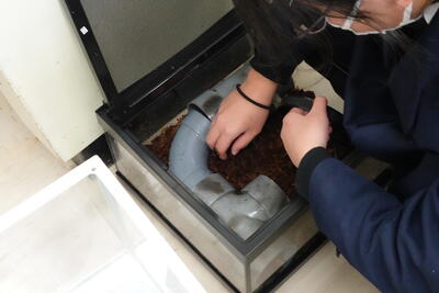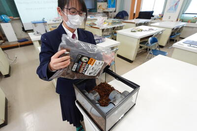 それもそのはず、2月に研究で使える授業時間は今日も含めて3回(最終週はJICA研修。その準備も並行して進めなければなりません...)。しかも、3月に入ると入試にかかる家庭学習期間などもあり、ARP探究成果発表会まで、授業中の活動はほぼできそうにないという状況なのです。地学室を見渡してみると、実験のための「部屋」の準備に追われている音響班に、実験に向けてプラスチックを必死に(?)切り刻むマイクロプラスチック班。家庭科室で自らを被験者に実験真っ最中の薬草班。活動の内容は様々ですが、どの班も少々焦りの表情を浮かべながらも、一生懸命研究を進めています。