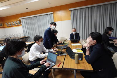 その後のワークショップでは、「仮説の設定」の指導分野でのロールプレイングを行いました。先に説明のあった「質問機能」を活用して、仮説をどのように検証可能にするか、ということを個人や教科毎のグループで考えました。仮説が十分に作成されれば、その後の研究活動がスムーズに進みやすくなります。今回の研修での学びを各教科の授業やAS・ATで実践し、生徒たちの探究活動での学びを深めるための効果的な指導・助言を行っていきたいと思います。