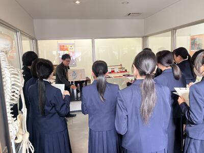 大江にある薬学部では、16名の生徒が研修を行いました。午前中は薬学部甲斐先生より、「透析患者をゼロにする」薬の開発に関する講義を受けました。研究内容や研究に必要なスキルについての話のほか、先生のモットー「運を運びたければ足を運べ 河の流れのままに」という言葉のように、生徒たちが自ら行動を起こし、会ったことのない人に会うことで、成長の機会としてほしいこと。河の流れに逆らって溺れてしまうのではなく、自然体でいること。つまり、ゴールに向かう道は様々であっても、最終的な目標をしっかり持って意欲的に挑戦することが大事だと、講義を通して高校生に向けての力強いエールをいただきました。午後からは天草高校のご出身である和田先生より「植物の二次代謝産物」について講義を受けた後、様々な植物由来の飲料の抗酸化活性の測定を体験しました。今まで使ったことのない実験器具ばかりでしたが、薬学部の岸本先生や学生の皆さんに丁寧に扱い方を教えていただき、生徒たちはとても充実した時間を過ごせたようです。実習後は薬草園をご案内いただいて多種多様な植物の特徴を伺ったことも、また有意義な時間となりました。
