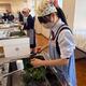 この班は、ハムとほうれん草でかわいくお花を作っていました。