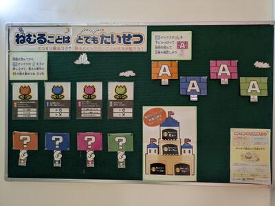 生活リズムを取り戻そうということで、保健室前掲示板は睡眠についてです