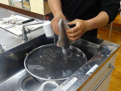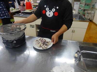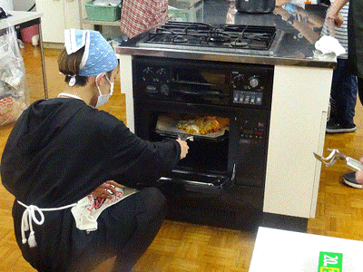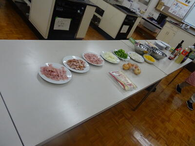 家庭科室をお借りして、大人数のクッキング