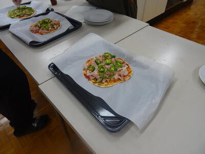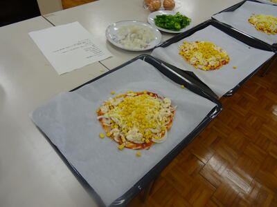 生地をこねる係とトッピングを準備する係に分かれていました。