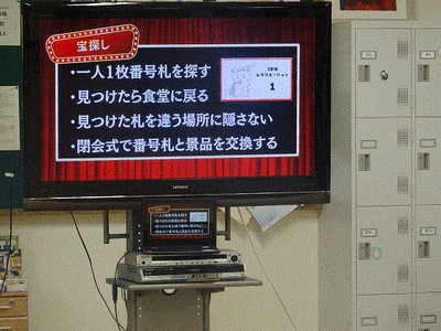 1,2年棟を使って、生徒会が隠した番号札を探します。