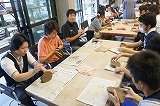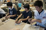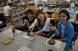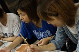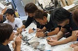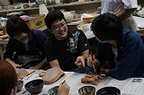 前回に続き焼きあがった作品に、色付けを行いました。青系と赤系の2色を使って、模様を描いたり、全体的に塗ったりと生徒の個性が発揮される作品に仕上がりました。出来上がりがとても楽しみです。