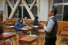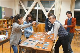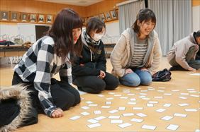 1月17日(火)の家庭科の授業で、3年生は「天草宝島かるた」をしました。「天草宝島かるた」とは、天草8校の生徒から天草に関する川柳を募集し、その中から選りすぐりの句を使って作成したものです。取り札は、各校の家庭科の先生方が各地を回って撮影された写真です。地元の句がでると、豆知識を語ったりして、とても楽しかったです。