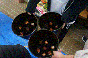 今年度も、入学式に飾るためのチューリップ球根の植え付けをしましたハート