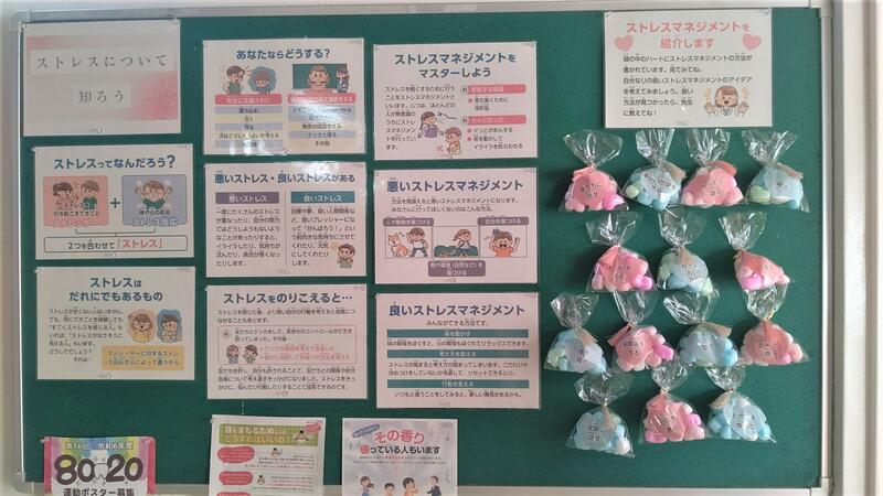 今年度の保健室前掲示板は、ストレス対処についてをメインにしようと思います動物
