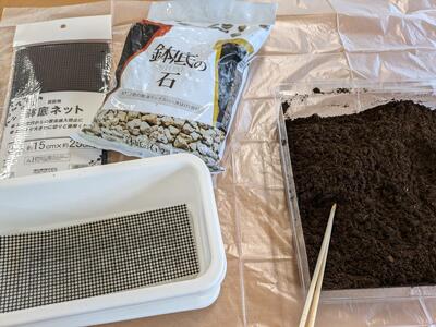 今年もドライブスルー方式(土と球根が廊下に並んでいるので、順に入れていく)です