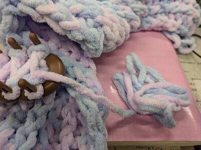 そこで、家にあった余りの毛糸でマフラーやスヌードを作ってみました星