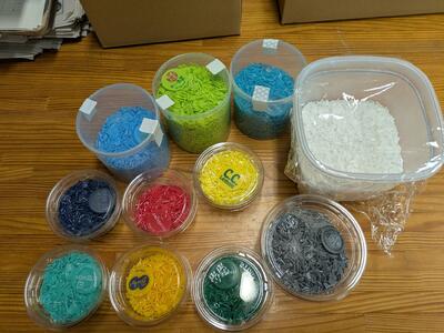 ずっとやってみたかった、ペットボトルキャップのグラデ詰め