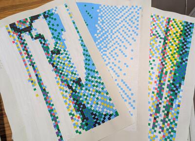ポスカの太さに比べてモザイクアートのマスは小さいので、どうしても端が丸くなってしまいます(1枚目)
