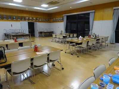 発表のリハーサルが終わった後、食堂で組み立てを行います