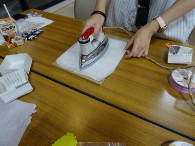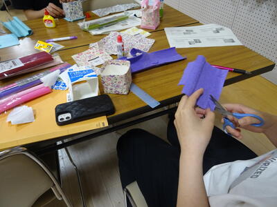 これは見本用ですが、当日は生徒たちの作品もこういう風にラッピングして飾ります