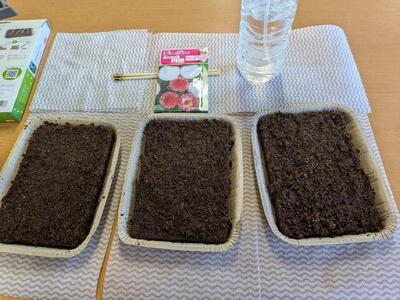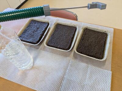 ピートバンに水をたっぷり含ませて(ふくらむまでかなりの水の量が必要でした)