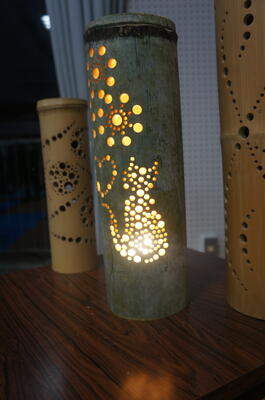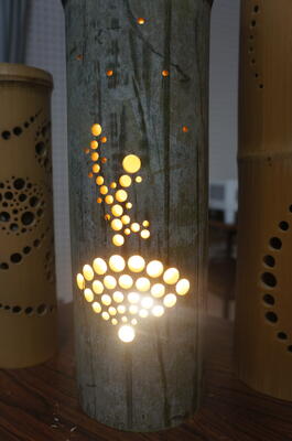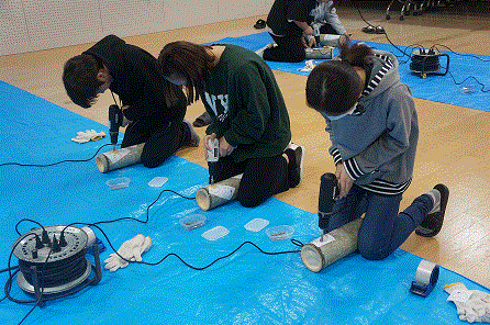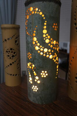 今年度は大宮地竹灯籠組合の方に来ていただき、竹灯籠作り体験を行いました